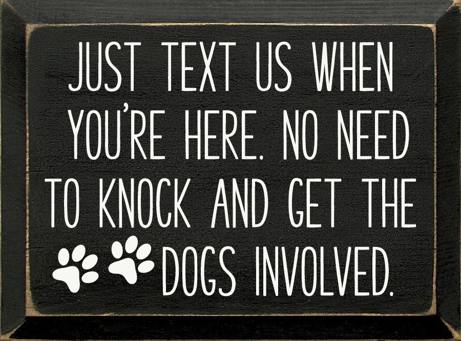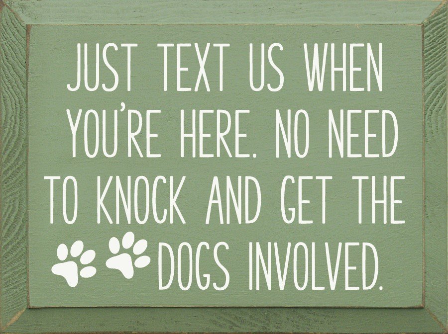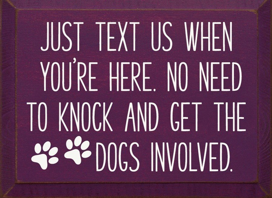 Home > Just text us when you're here. No need to knock and get the dogs involved.