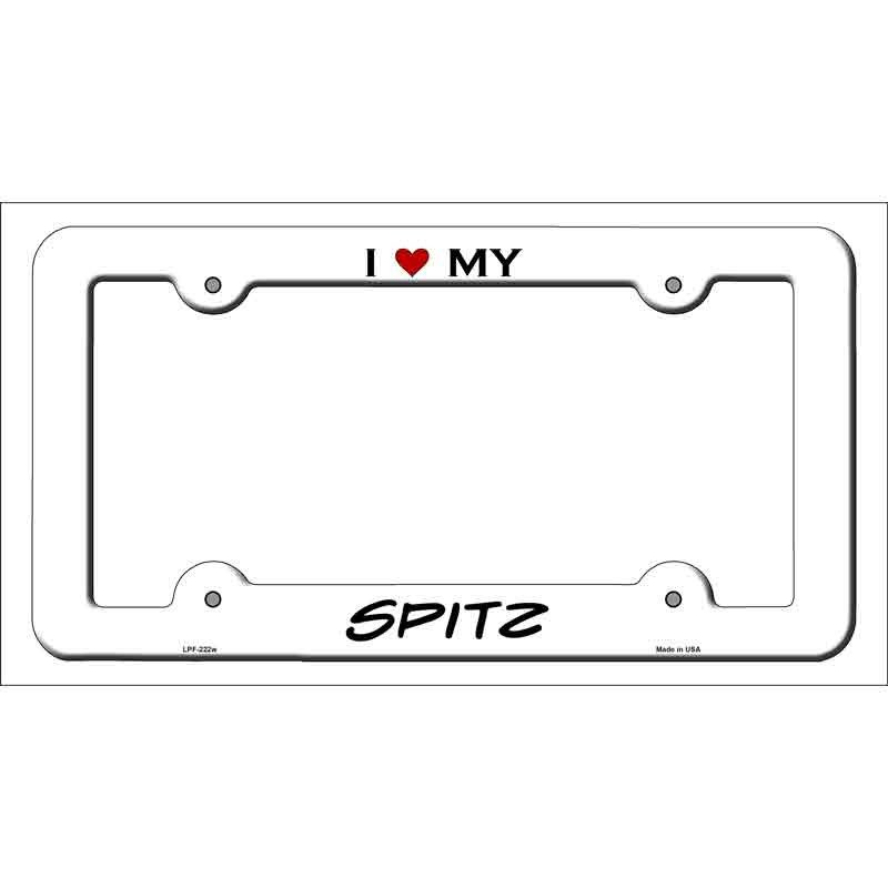 Add canine charm by having this unique frame displayed on your vehicle with our Novelty Metal license plate frame featuring I (heart) My Spitz. Make your personal statement with this quality license plate frame. It makes a great gift for the hopelessly passionate Spitz lover in your life.