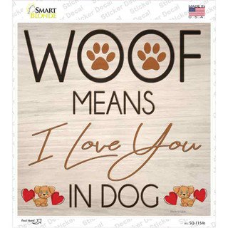 Woof means I Love You Novelty Square Sticker Decal