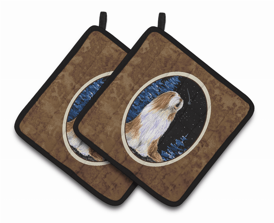 Bearded Collie 2 Starry Night Pair of Potholders Bearded Collie 2 Starry Night Pair of Potholders