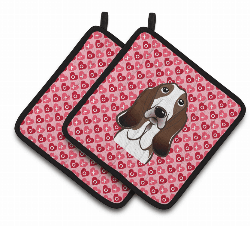 Basset Hound XOXO Hearts Pair of Potholders Basset Hound XOXO Hearts Pair of Potholders