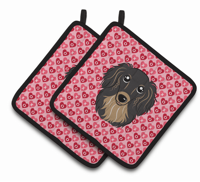 Dachshund 1 XOXO Hearts Pair of Potholders Dachshund 1 XOXO Hearts Pair of Potholders