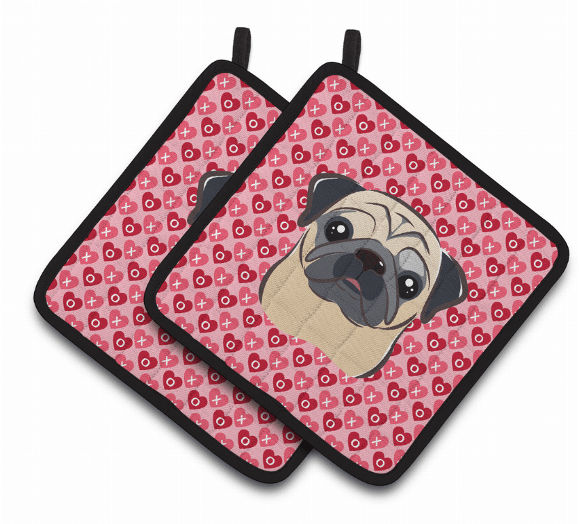 Pug 2 XOXO Hearts Pair of Potholders Pug 2 XOXO Hearts Pair of Potholders