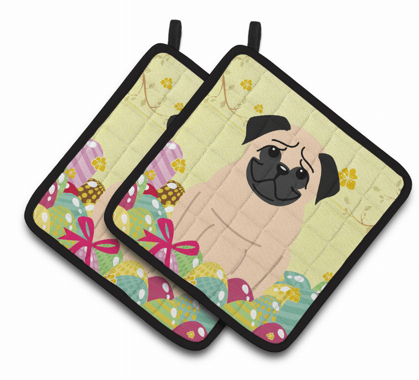 Pug - Fawn - Easter Eggs Pair of Potholders Pug - Fawn - Easter Eggs Pair of Potholders