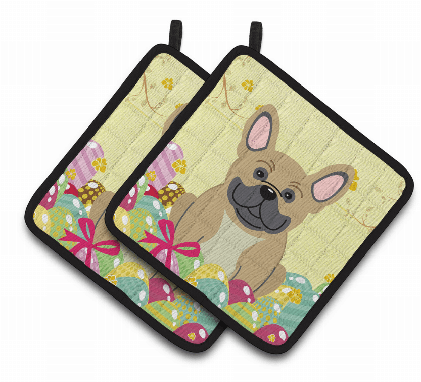 French Bulldog - Cream - Easter Eggs Pair of Potholders French Bulldog - Cream - Easter Eggs Pair of Potholders