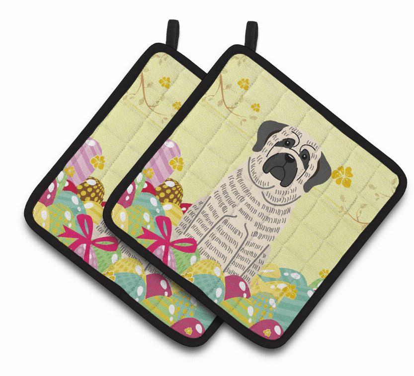 Mastiff - Brindle and White - Easter Eggs Pair of Potholders Mastiff - Brindle and White - Easter Eggs Pair of Potholders