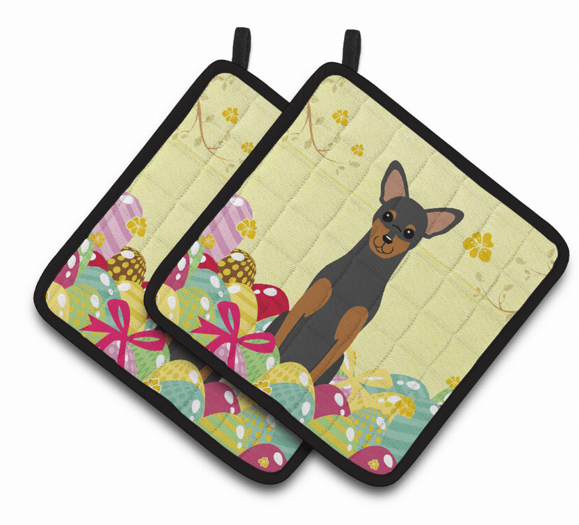 Manchester Terrier Easter Eggs Pair of Potholders Manchester Terrier Easter Eggs Pair of Potholders