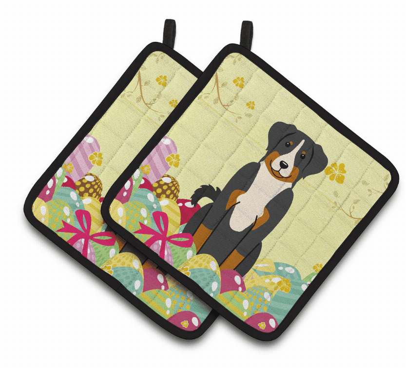Appenzeller Sennenhund Easter Eggs Pair of Potholders