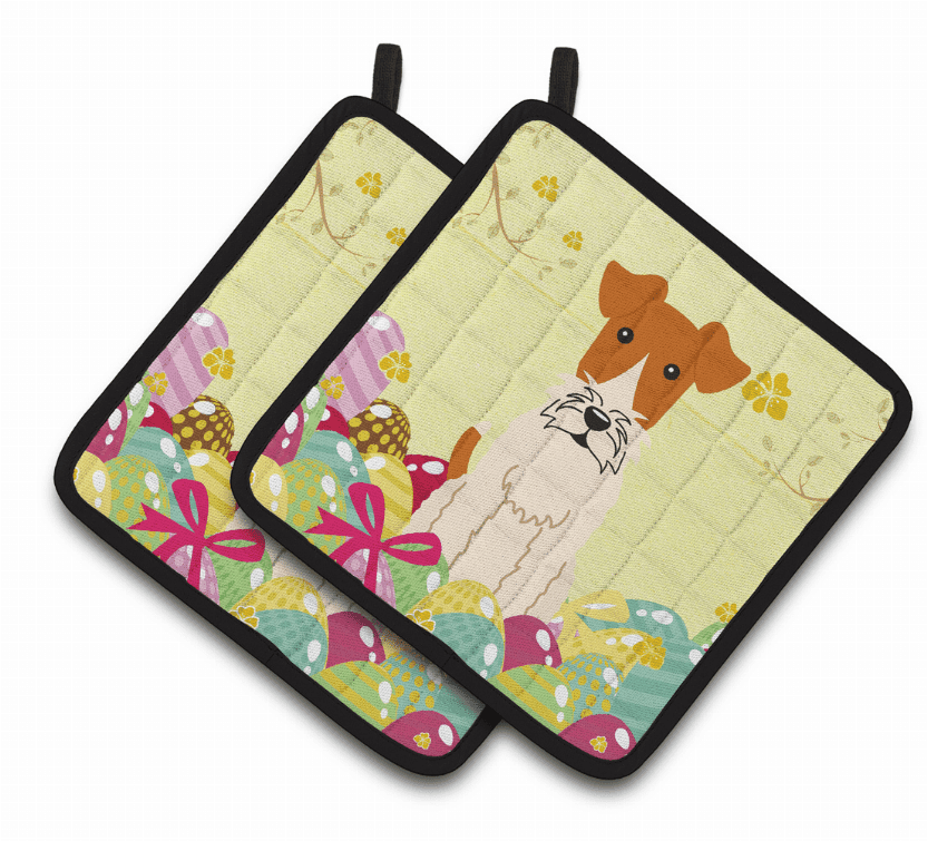 Wire Fox Terrier Easter Eggs Pair of Potholders Wire Fox Terrier Easter Eggs Pair of Potholders
