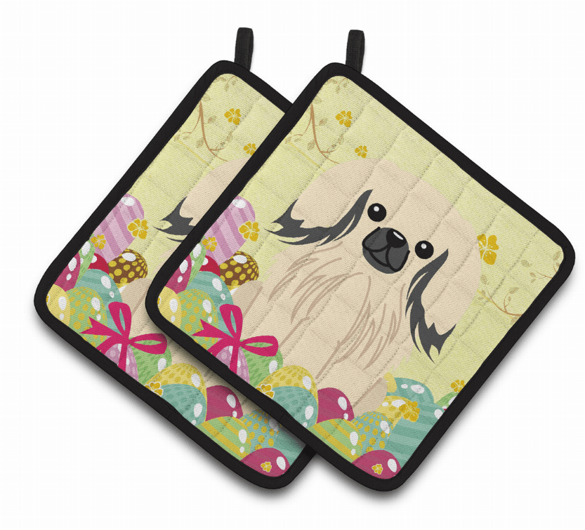Pekingese - Cream - Easter Eggs Pair of Potholders Pekingese - Cream - Easter Eggs Pair of Potholders