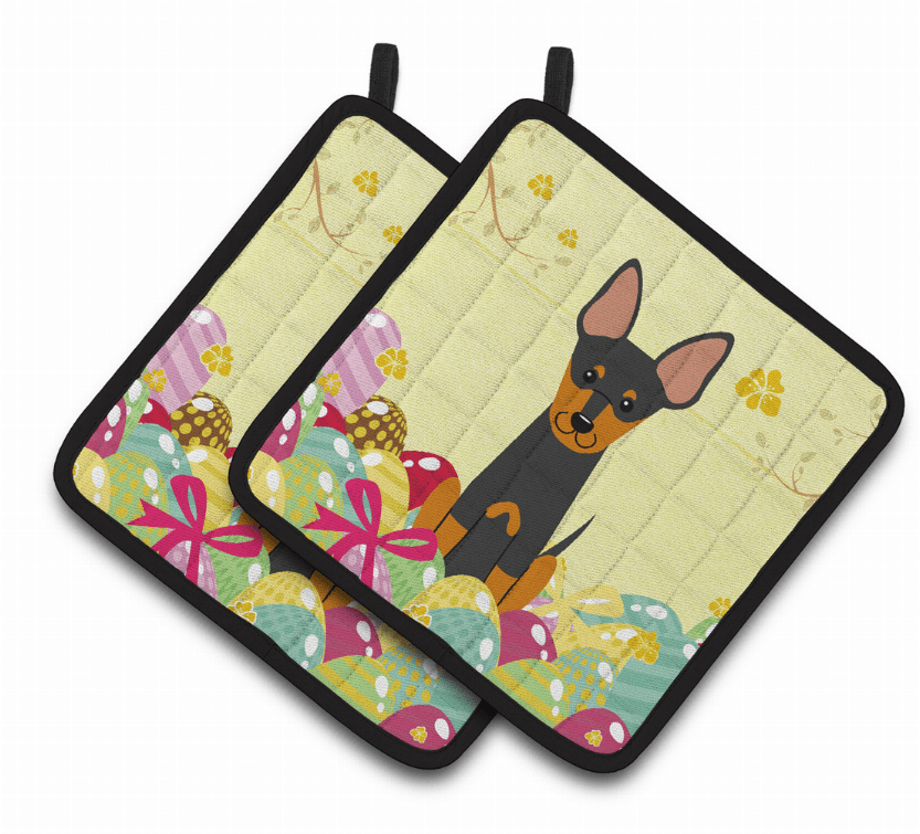 Toy Fox Terrier Easter Eggs Pair of Potholders