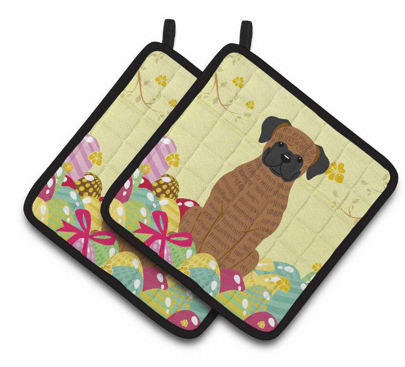 Boxer - Brindle - Easter Eggs Pair of Potholders Boxer - Brindle - Easter Eggs Pair of Potholders