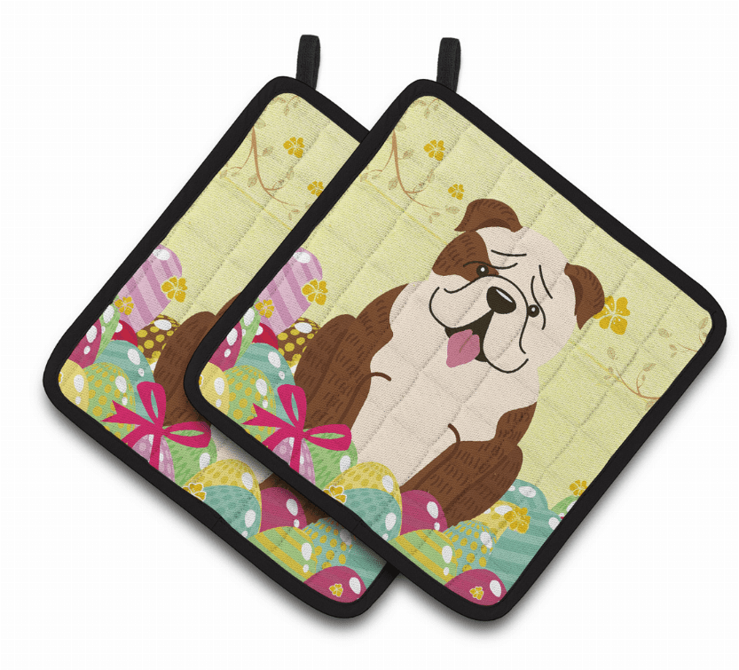 Bulldog - Brindle and White - Easter Eggs Pair of Potholders Bulldog - Brindle and White - Easter Eggs Pair of Potholders