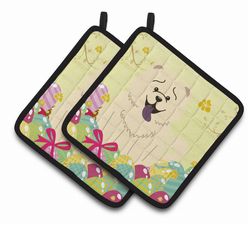 Chow Chow - White - Easter Eggs Pair of Potholders Chow Chow - White - Easter Eggs Pair of Potholders