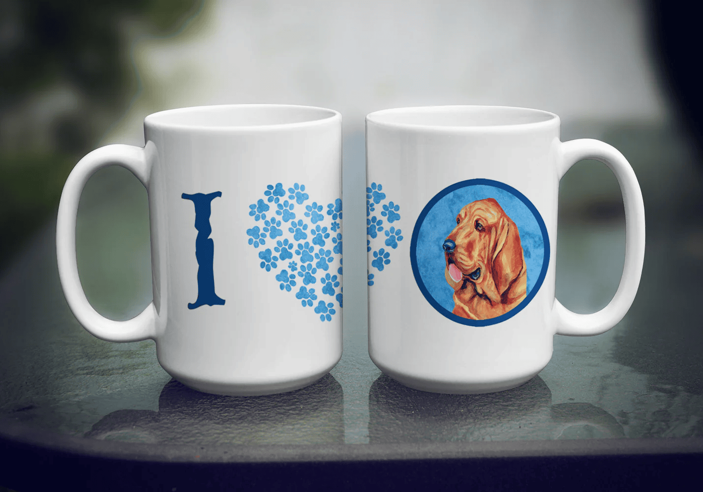 Add genuine canine charm to your coffee/tea our ceramic mug featuring an I “heart” Bloodhound head in a blue circle that highlights this popular breed. Our mug is 15 oz to have a nice size drink that also maintains the temperature of your beverage. Made of ceramic in the USA. This dog-themed mug is ideal for everyday use. It makes a great gift for the hopelessly passionate Bloodhound lover in your life