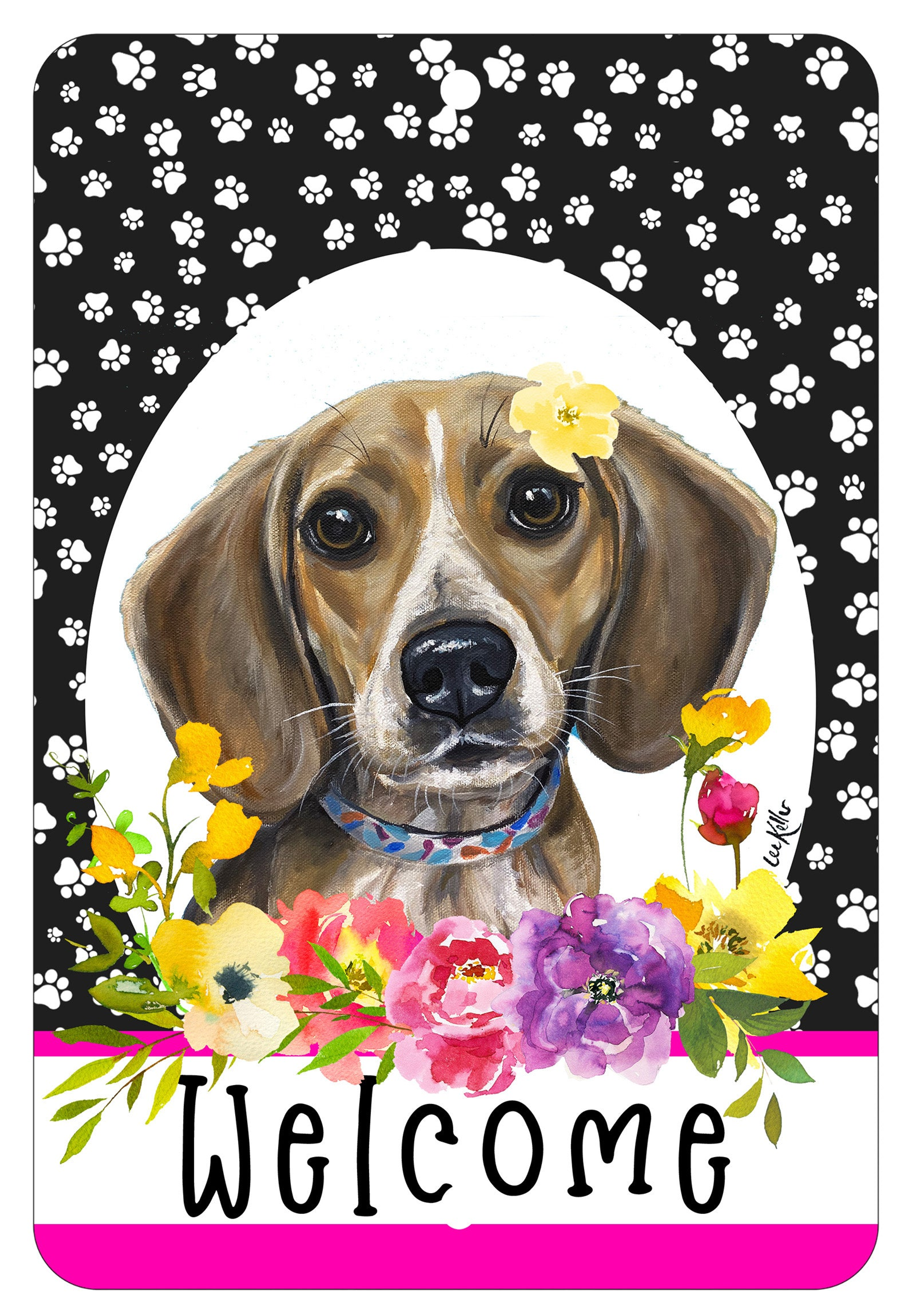 Add genuine canine charm to your space with our colorful aluminum HHS Paw Prints Welcome Sign featuring a highly detailed picture of a Beagle. Our talented artists added a vibrant background of colorful flowers to highlight this popular breed. Make your personal statement with this quality welcome sign. It makes a great gift for the hopelessly passionate Beagle lover in your life.