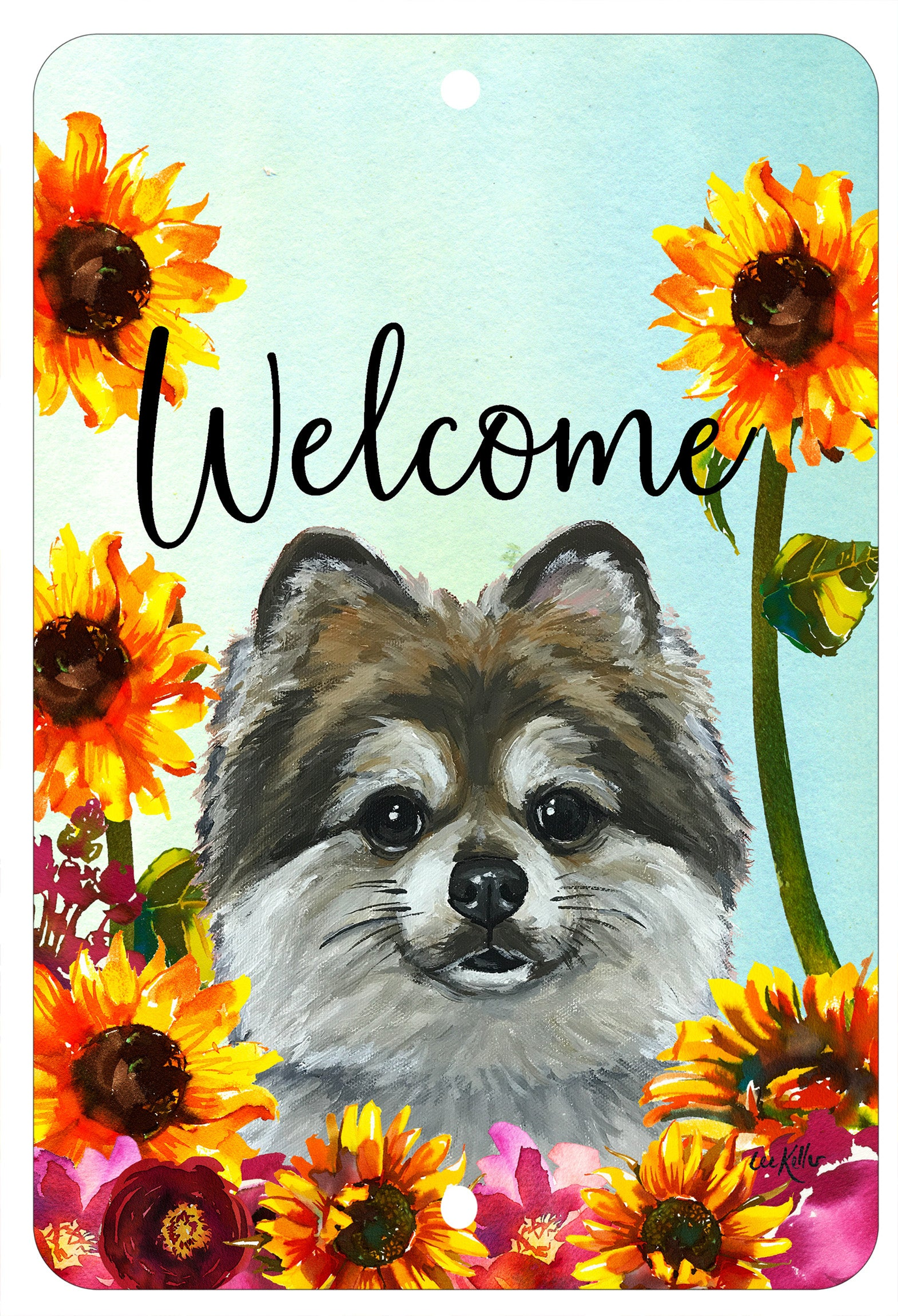 Add genuine canine charm to your space with our colorful aluminum HHS Welcome Sign featuring a highly detailed picture of a Pomeranian. Our talented artists added a pastel background with colorful sunflowers to highlight this popular breed. Make your personal statement with this quality welcome sign. It makes a great gift for the hopelessly passionate Pomeranian lover in your life.