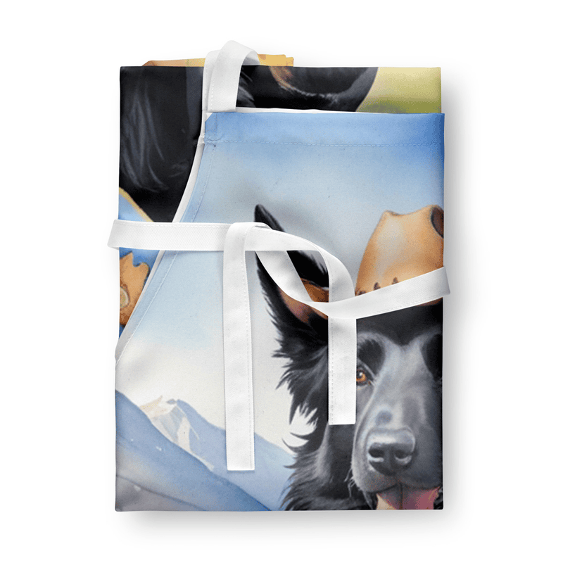 Add genuine canine charm to your daily chores with our colorful bib style apron featuring a highly detailed Belgian Sheepdog sporting a cowboy hat and a bandanna around his neck. Our talented artists added a vibrant western landscape to highlight this popular breed. Our bib style apron is machine washable and dries quickly. Made of 100% ultra spun polyester, making it lightweight, durable, and stain resistant. Designed for both men and women with dimensions of approximately 27” W x 30” H providing ample protection to safeguard your clothing from spill, stains, and messes in general. The white tie straps make this apron adjustable and comfortable for all wearers. The natural stain-resistance of the polyester material stays new-looking for much longer. This dog-themed apron is ideal for everyday use during messy activities such as baking, grilling, gardening, dog grooming, and so much more. It makes a great gift for the hopelessly passionate Belgian Sheepdog lover in your life.