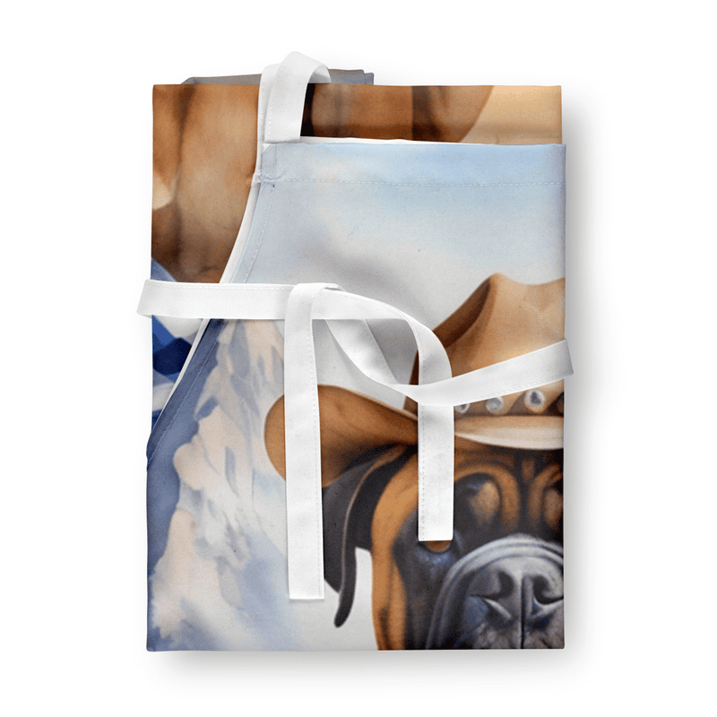 Get this Bullmastiff "Cowboy" themed apron and showcase your affection for your favorite dog breed throughout all your daily activities!