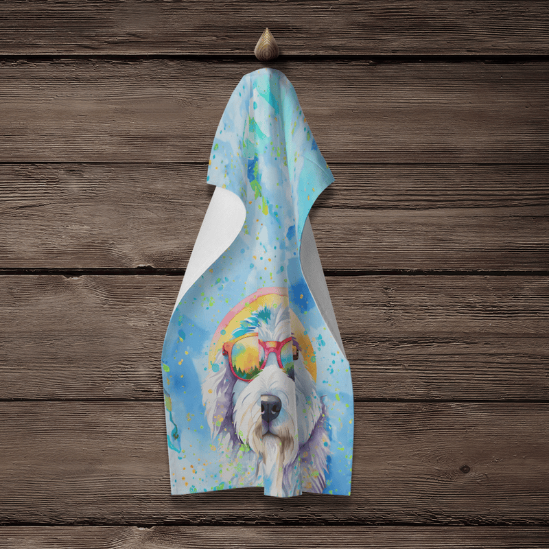 Old English Sheepdog 2 Hippie Dawg Kitchen Towel
