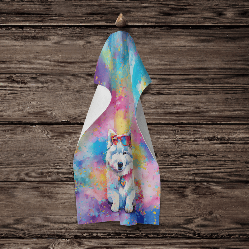 Get this Samoyed "Hippie Dawg" themed Kitchen towel and showcase your affection for your favorite dog breed throughout all your kitchen activities!