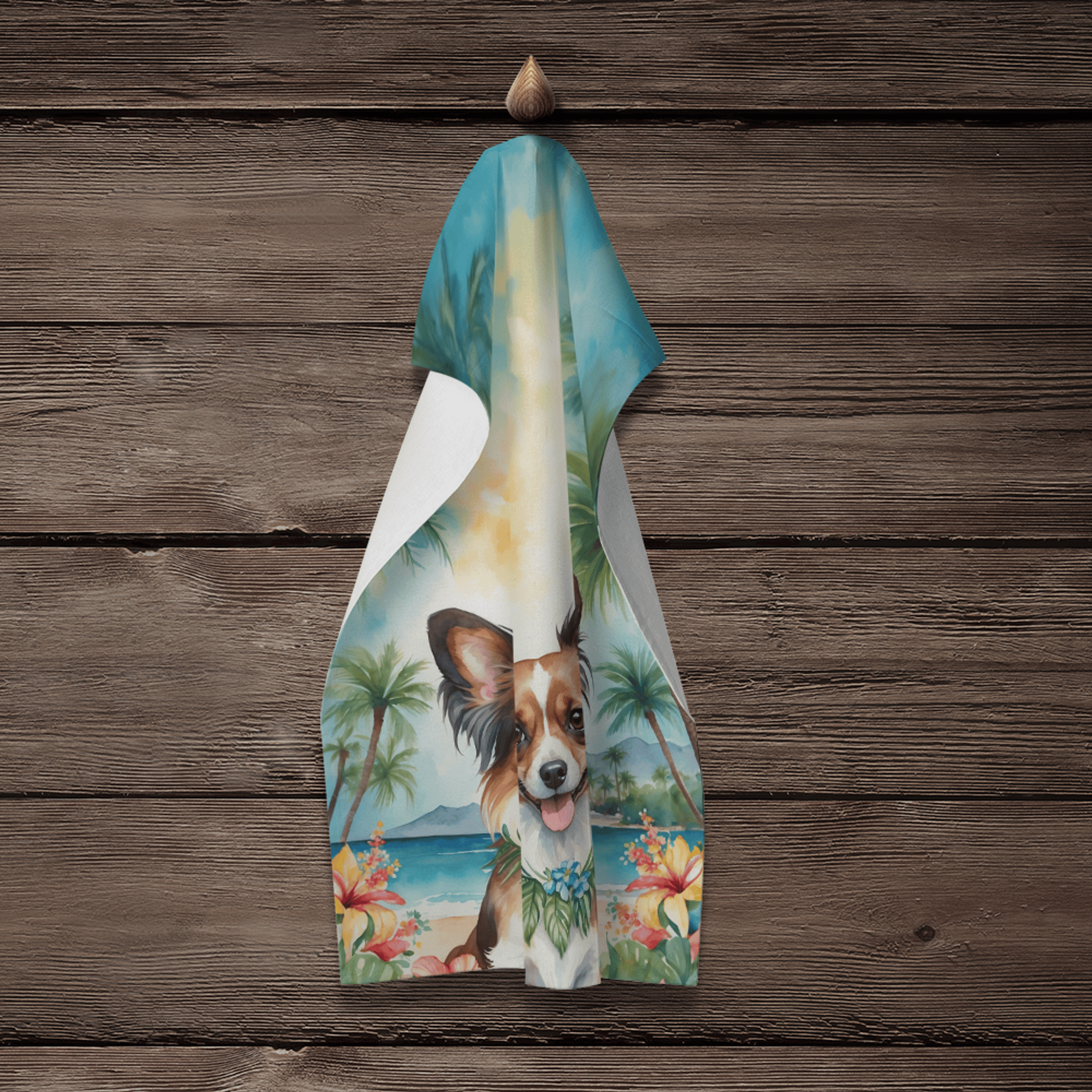 Get this Papillon "Luau" themed Kitchen towel and showcase your affection for your favorite dog breed throughout all your kitchen activities!