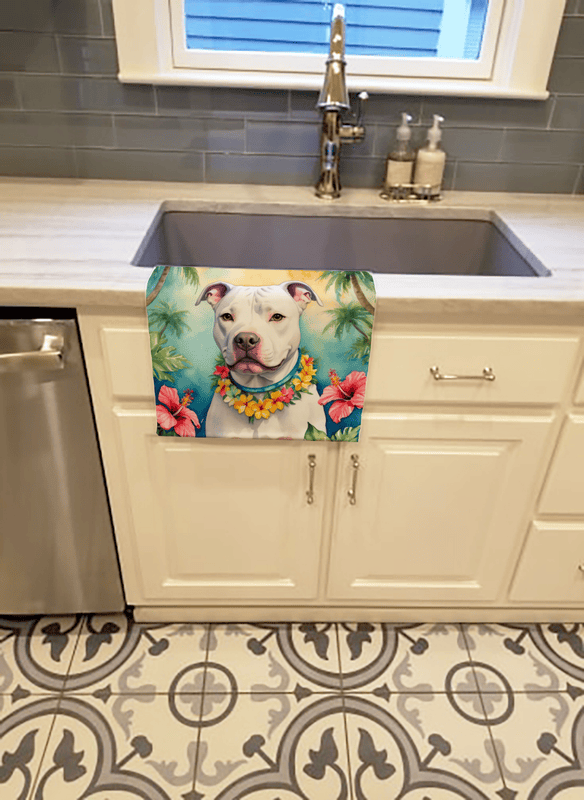 Get this Pit Bull Terrier "Luau" themed Kitchen towel and showcase your affection for your favorite dog breed throughout all your kitchen activities!
