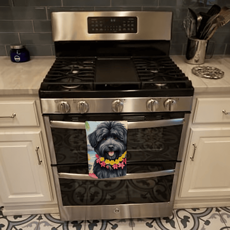Get this Puli "Luau" themed Kitchen towel and showcase your affection for your favorite dog breed throughout all your kitchen activities!