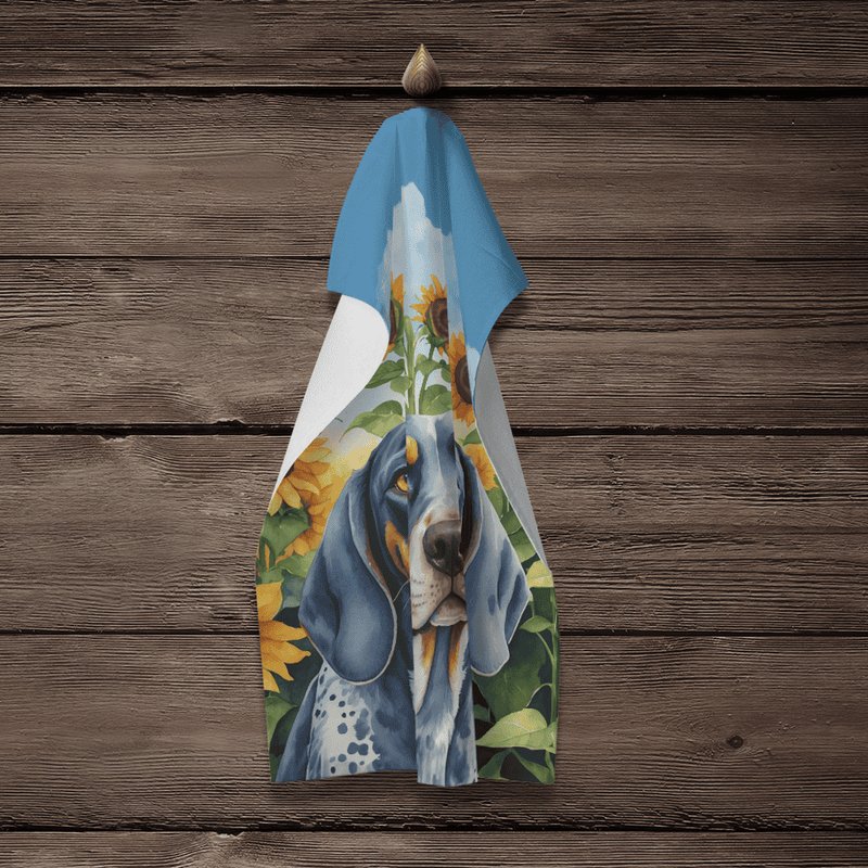 Get this Bluetick Coonhound "Sunflowers" themed Kitchen towel and showcase your affection for your favorite dog breed throughout all your kitchen activities!