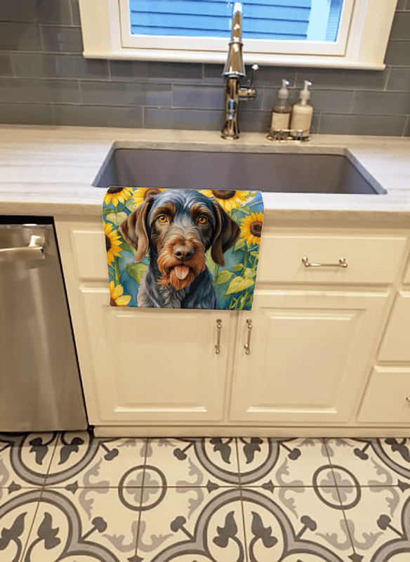 German Wirehaired Pointer in Sunflowers Kitchen Towel