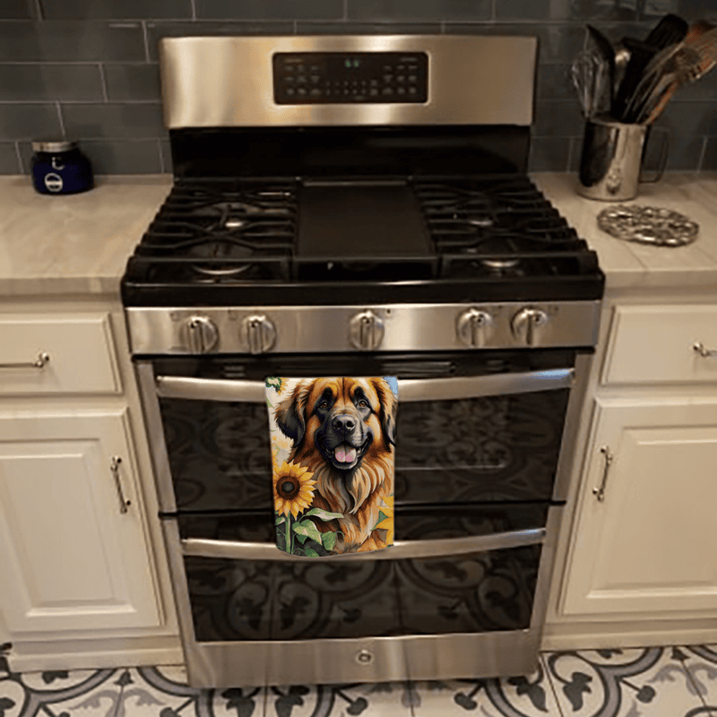 Get this Leonberger "Sunflowers" themed Kitchen towel and showcase your affection for your favorite dog breed throughout all your kitchen activities!