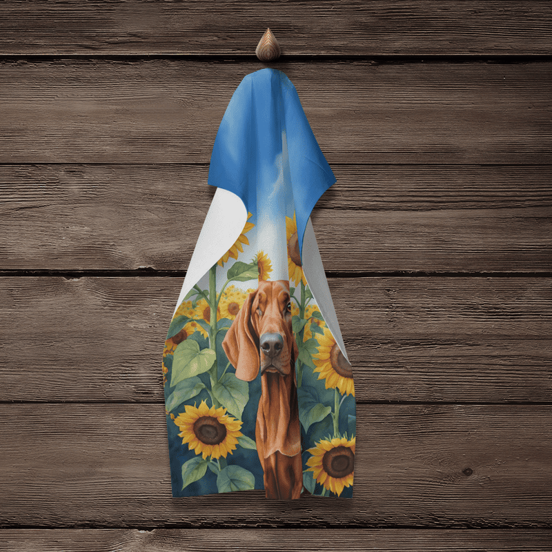 Redbone Coonhound in Sunflowers Kitchen Towel