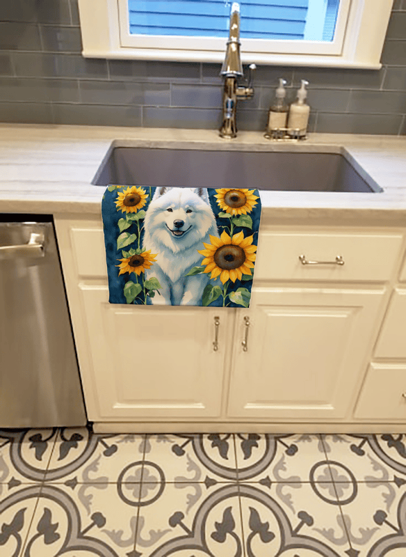 Samoyed 2 in Sunflowers Kitchen Towel