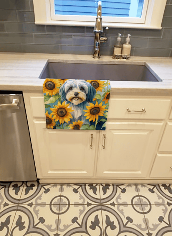 Tibetan Terrier in Sunflowers Kitchen Towel