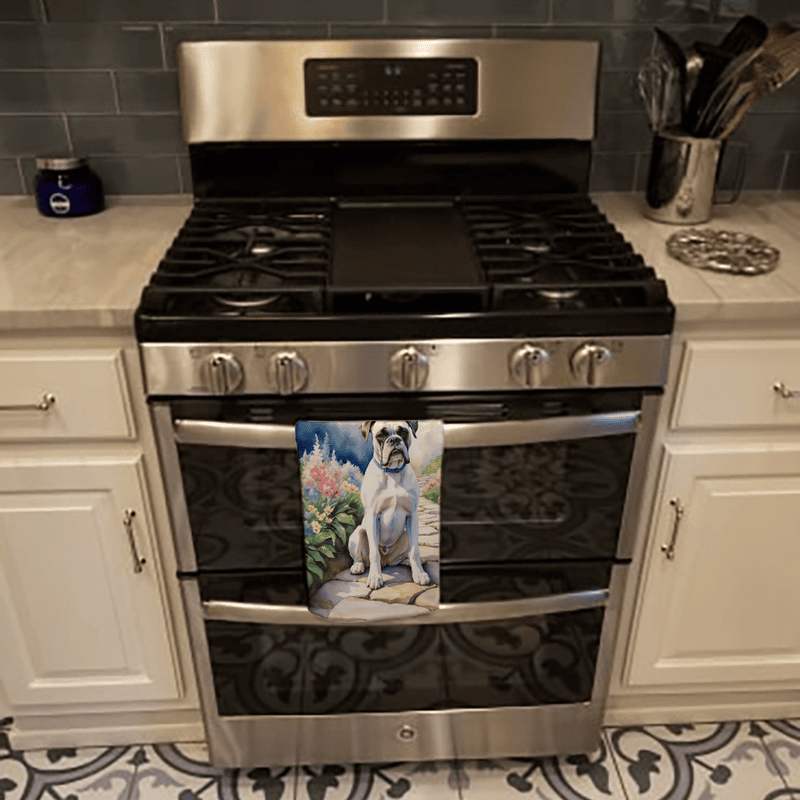 Get this Boxer "Spring Path" themed Kitchen towel and showcase your affection for your favorite dog breed throughout all your kitchen activities!