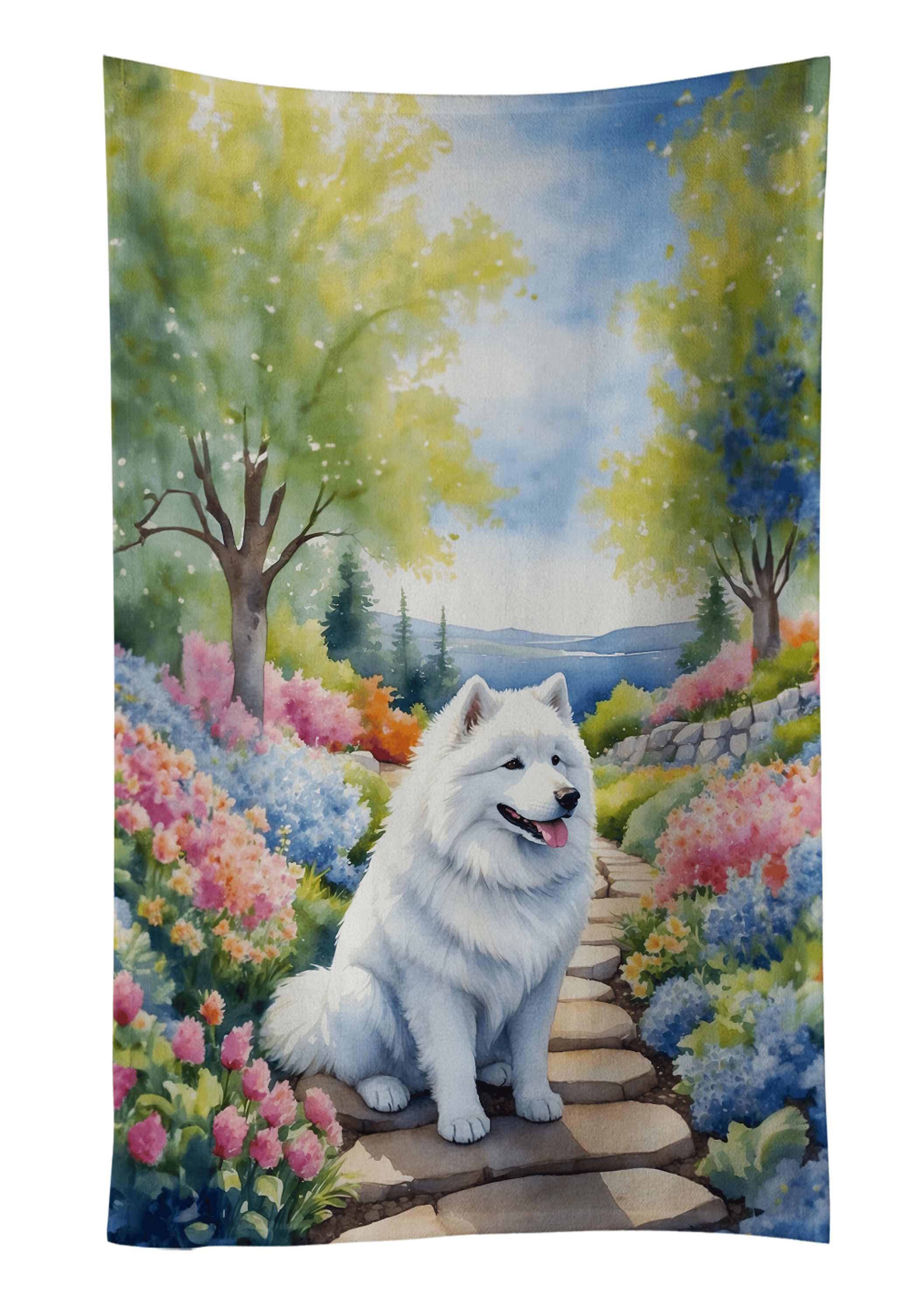 Get this Samoyed "Spring Path" themed Kitchen towel and showcase your affection for your favorite dog breed throughout all your kitchen activities!