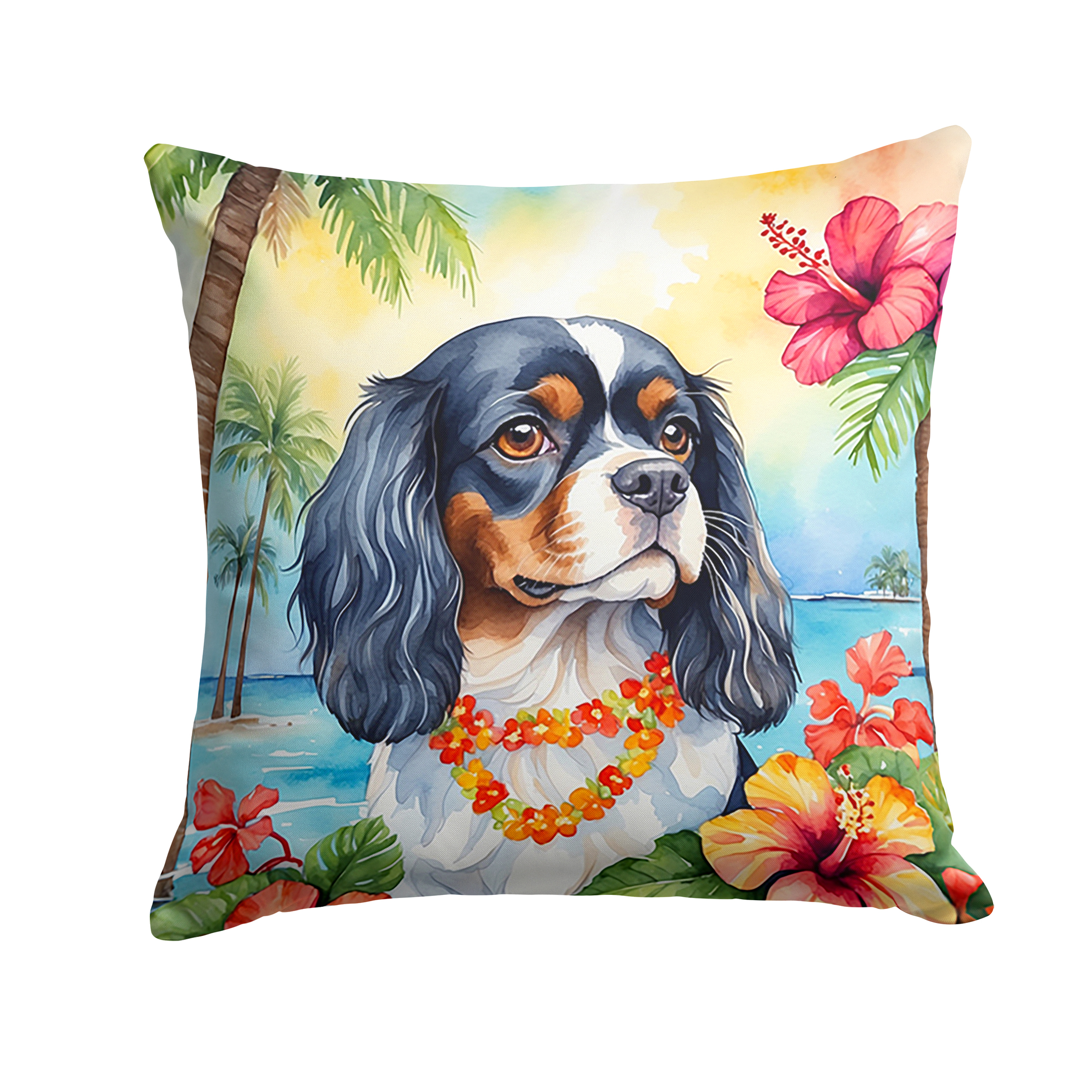 • Cavalier King Charles Spaniel "Luau" pillow themed design