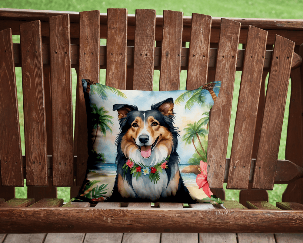 Add a touch of style and color to your couch or outdoor seating area with our Luau pillow featuring stunning artwork of a Collie wearing a lei. Our talented artists added a tropical background to highlight this popular breed. Make your personal statement with this quality pillow. It makes a great gift for the hopelessly passionate Collie lover in your life