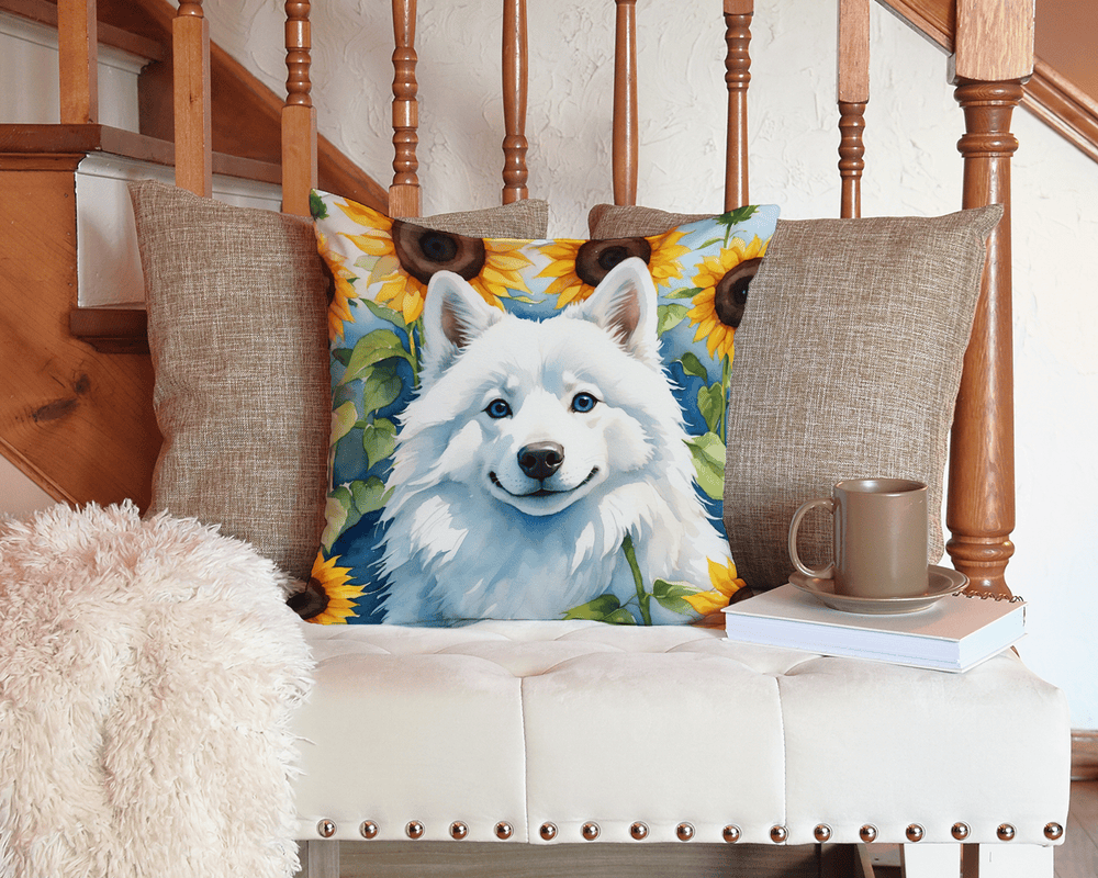 American Eskimo 6008 In Sunflowers Throw Pillow