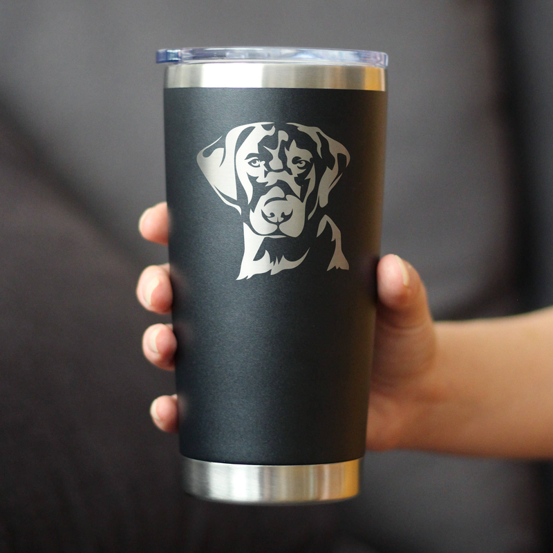"An etched drawing of an Labrador themed travel mug to have your beverage in true dog-loving fashion..."