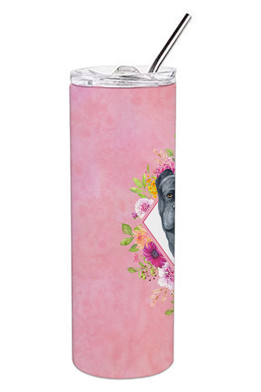 Cane Corso Pink Flowers Stainless Steel Skinny Tumbler