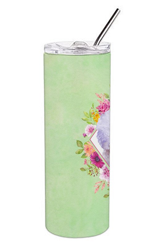 Bichon Frise #2 Green Flowers Stainless Steel Skinny Tumbler