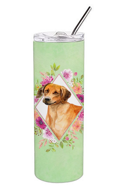 Rhodesian Ridgeback Green Flowers Stainless Steel Skinny Tumbler