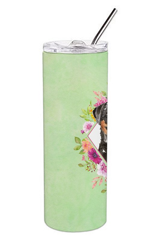 Rottweiler Green Flowers Stainless Steel Skinny Tumbler