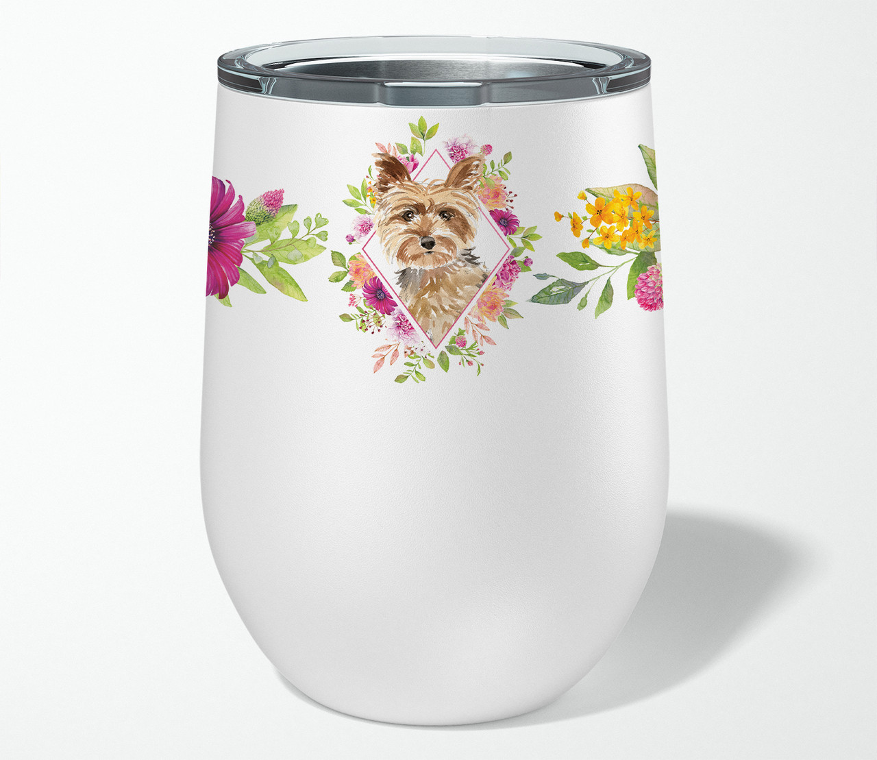 • Get this Yorkie "Pink Flowers" Stainless Steel Wine Glass Tumbler to showcase your affection for your favorite breed!