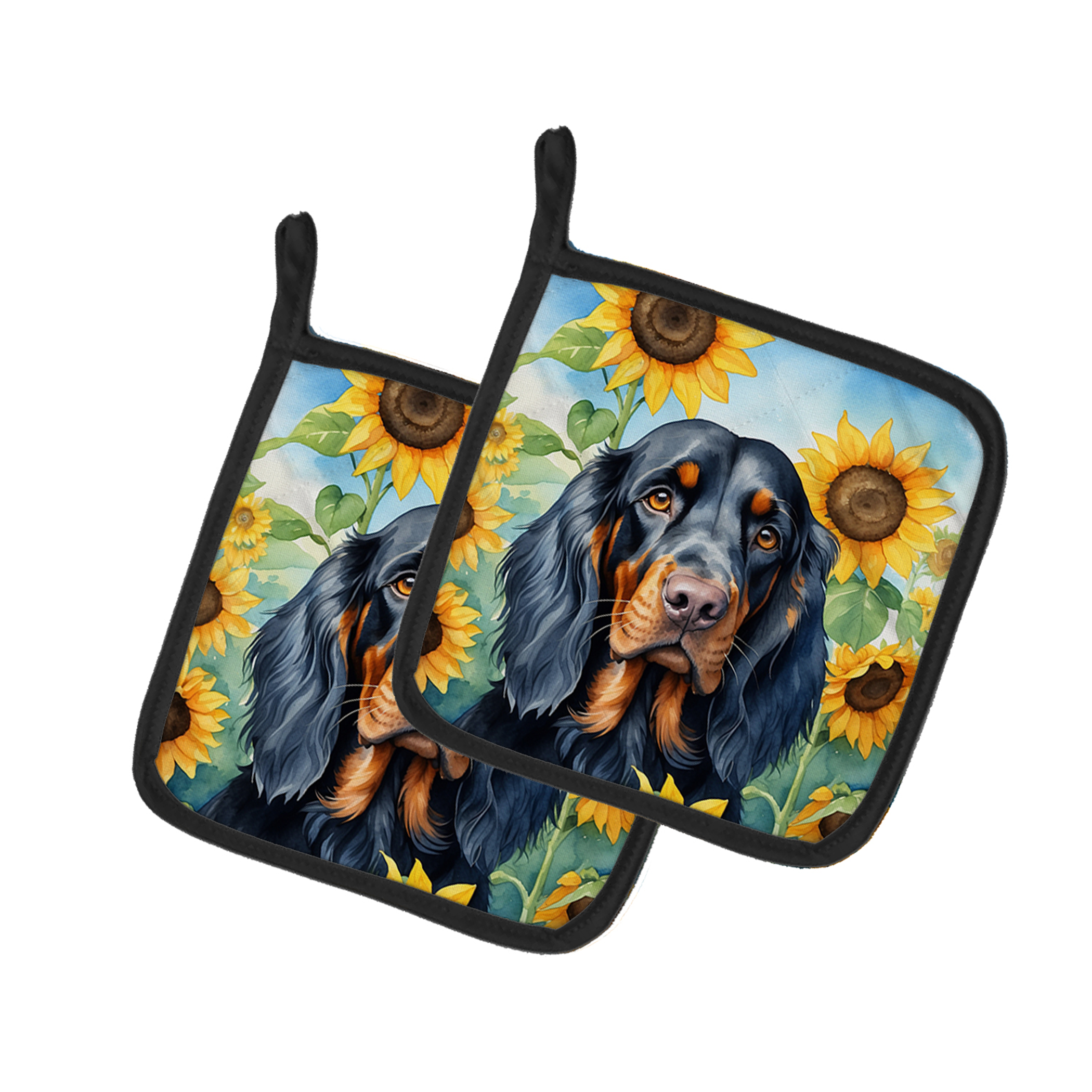 Gordon Setter 6090 In Sunflowers Pair of Potholders