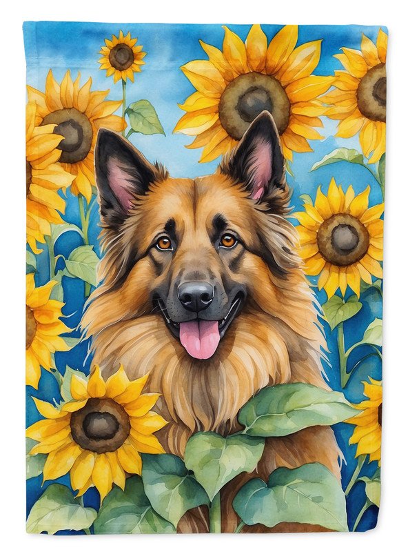 • Get this Belgian Tervuren "in Sunflowers" house flag to showcase your affection for your favorite breed!