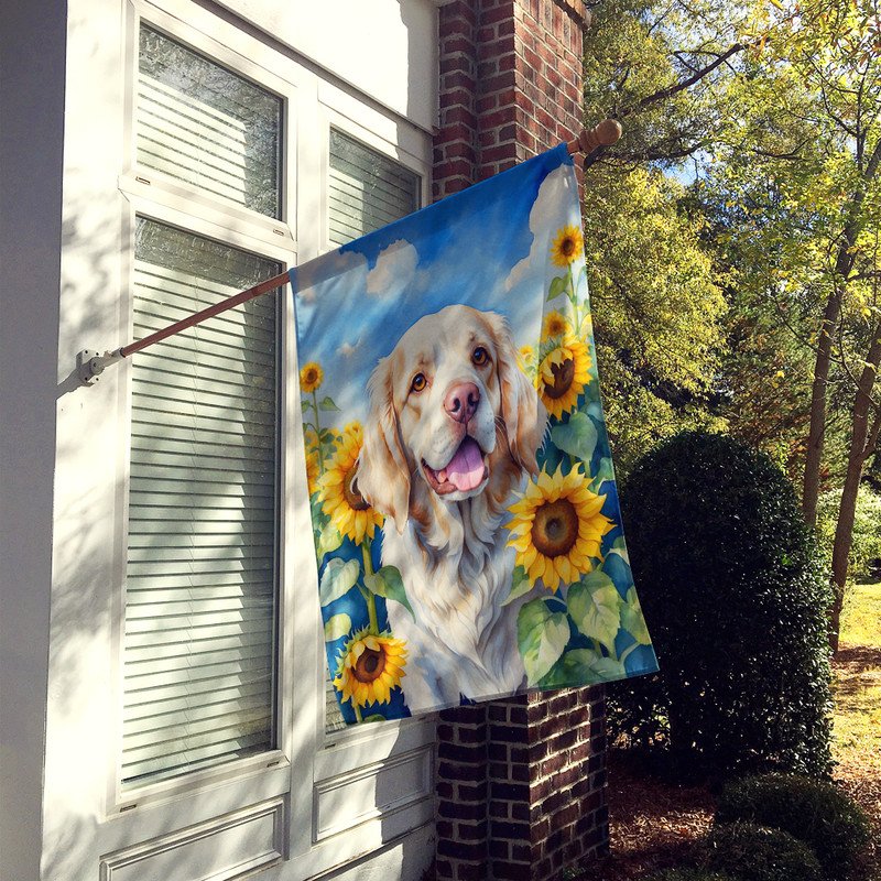 • "in Sunflowers" Clumber Spaniel house flag themed design