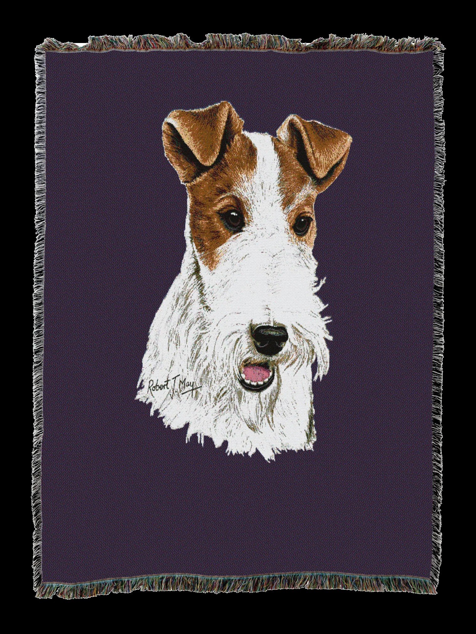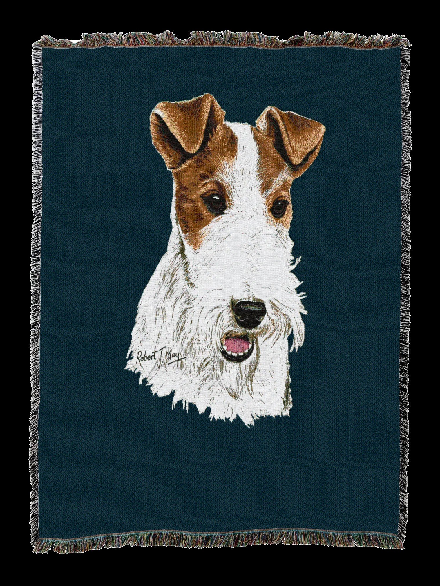 Add genuine canine charm to your favorite couch or chair with our cotton throw showing a detailed Wire Fox Terrier. Will make a great gift for the hopelessly passionate Wire Fox Terrier lover in your life.