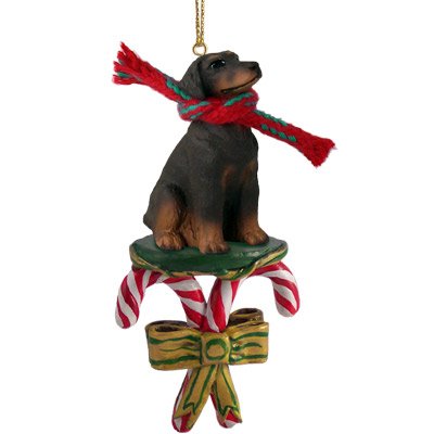 "An hand-painted resin figurine of an Doberman "Candy Cane ornament" to enhance your holiday space in true dog-loving fashion..."